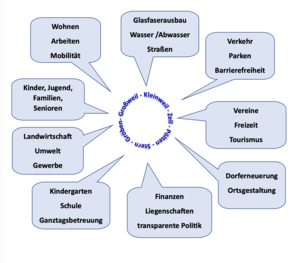 Liebe Wahlberechtigte, hier zeigen wir ihnen auf, wie wir uns die Zukunft unserer Heimatgemeinde vorstellen, welche Themen uns derzeit